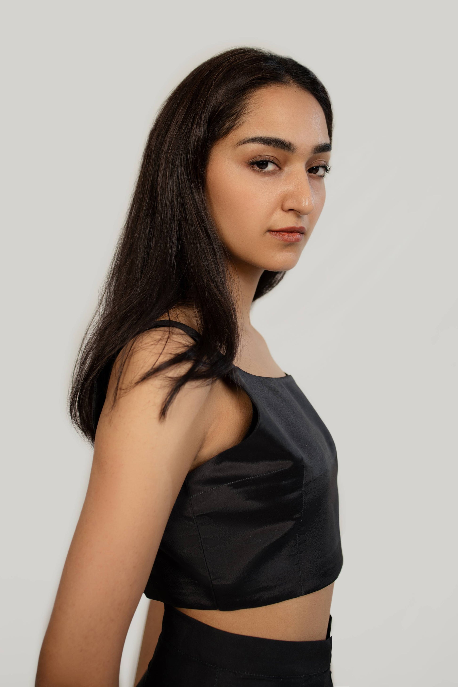 This tank top, crafted from Crepe fabric, features a sleeveless design with a relaxed fit and a clean round neckline for everyday comfort.