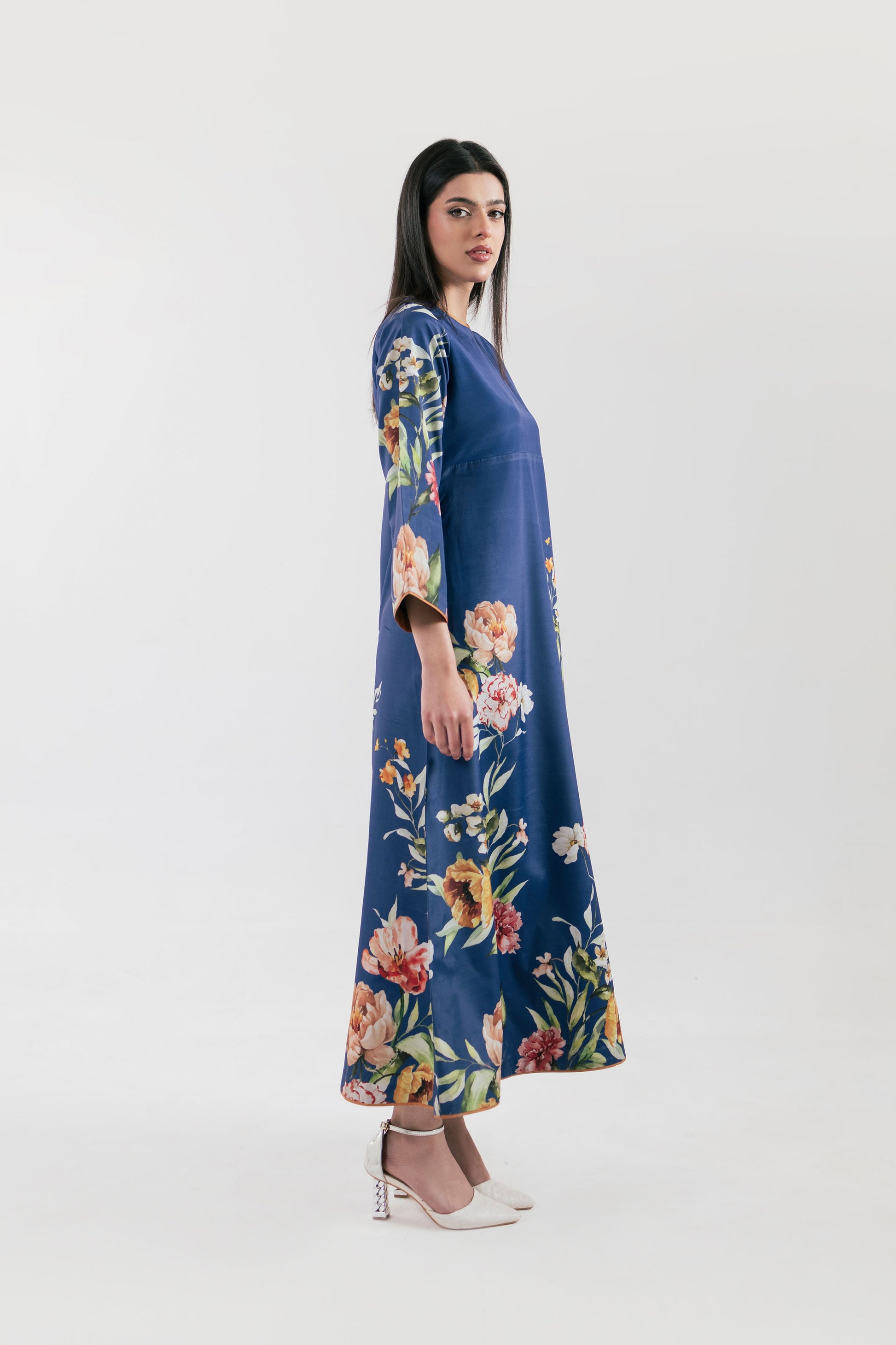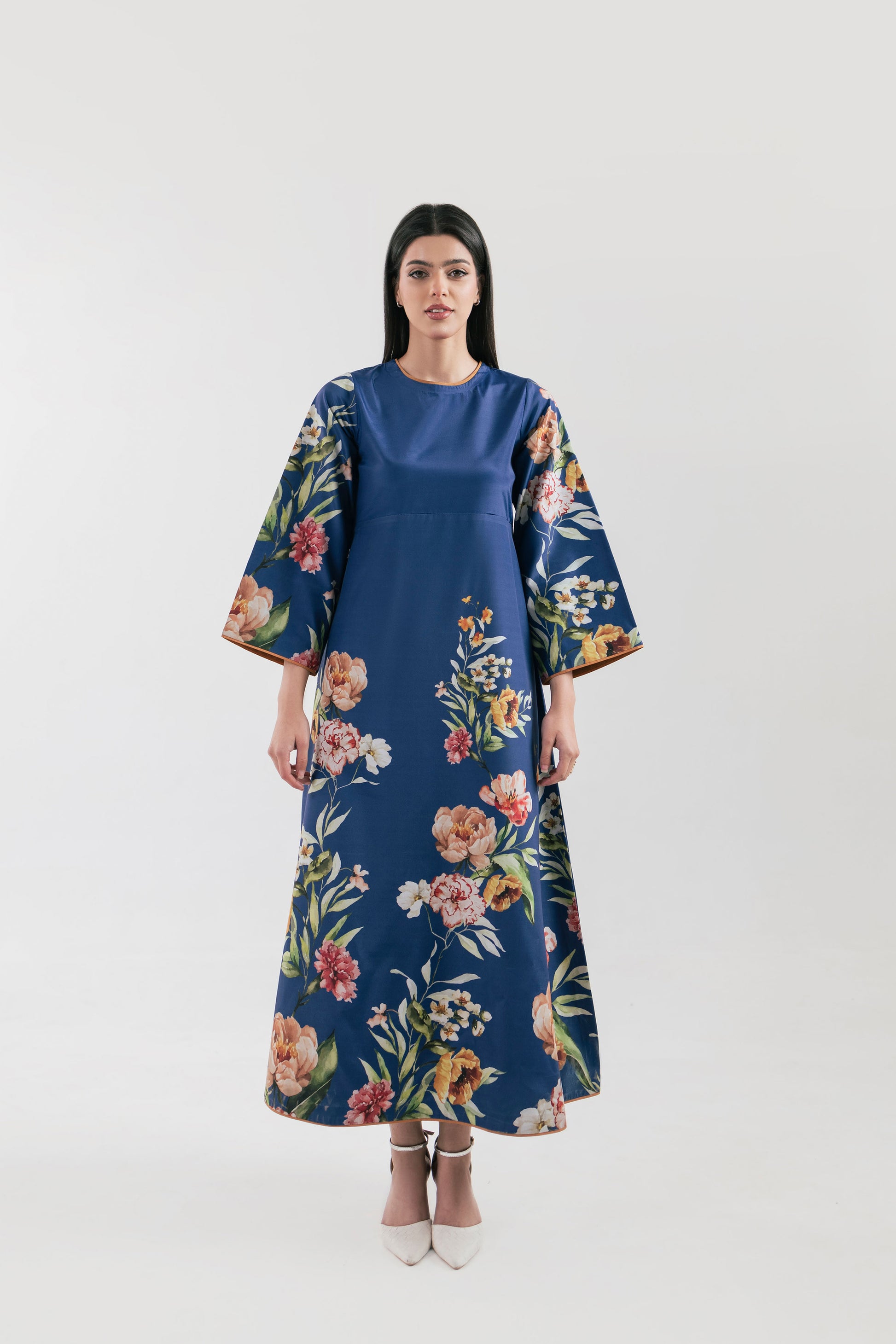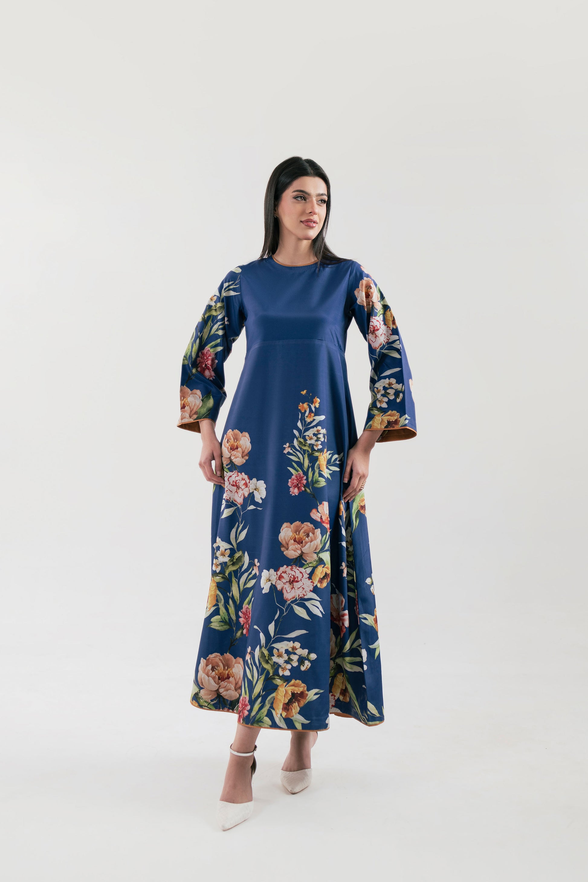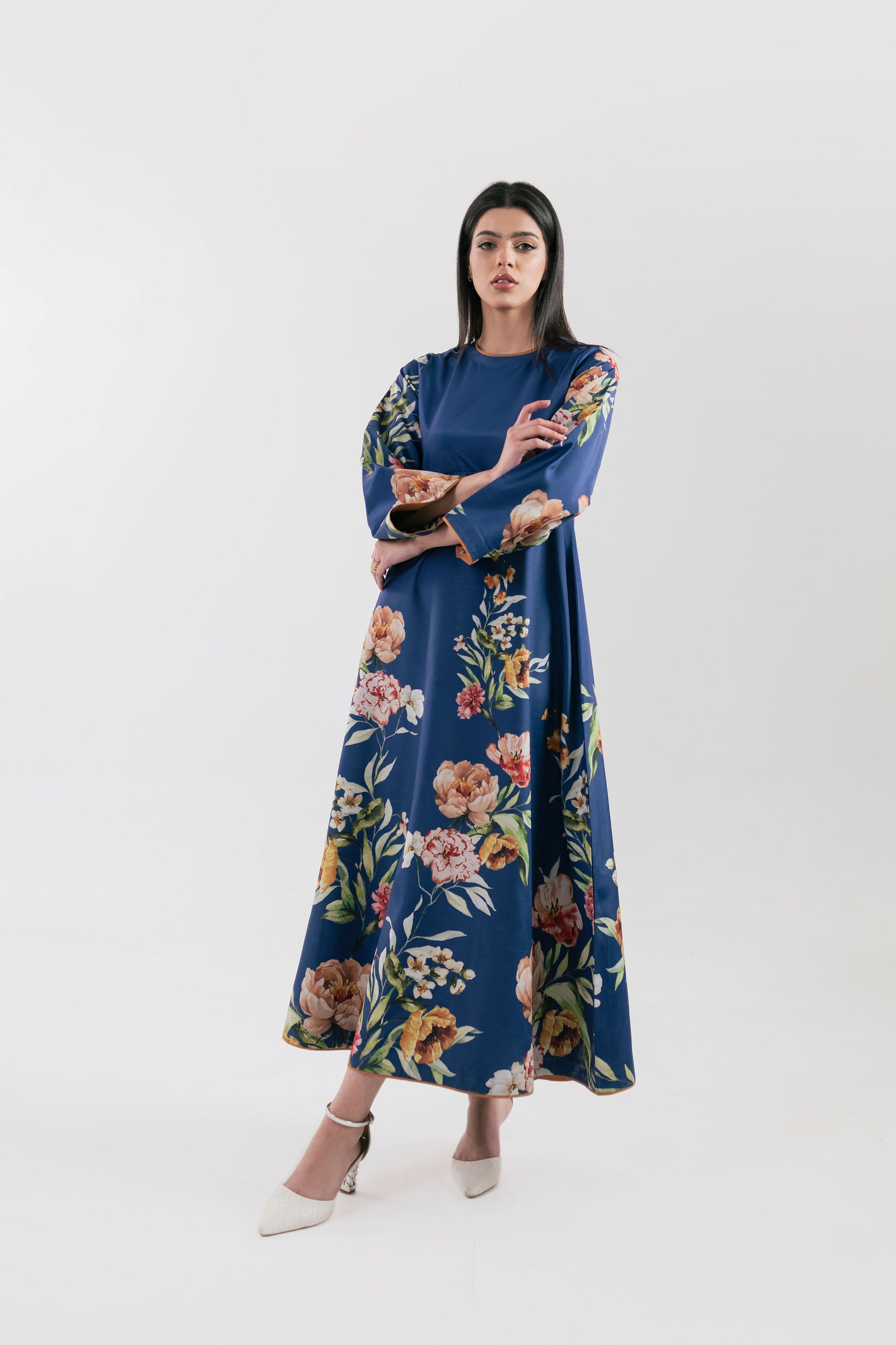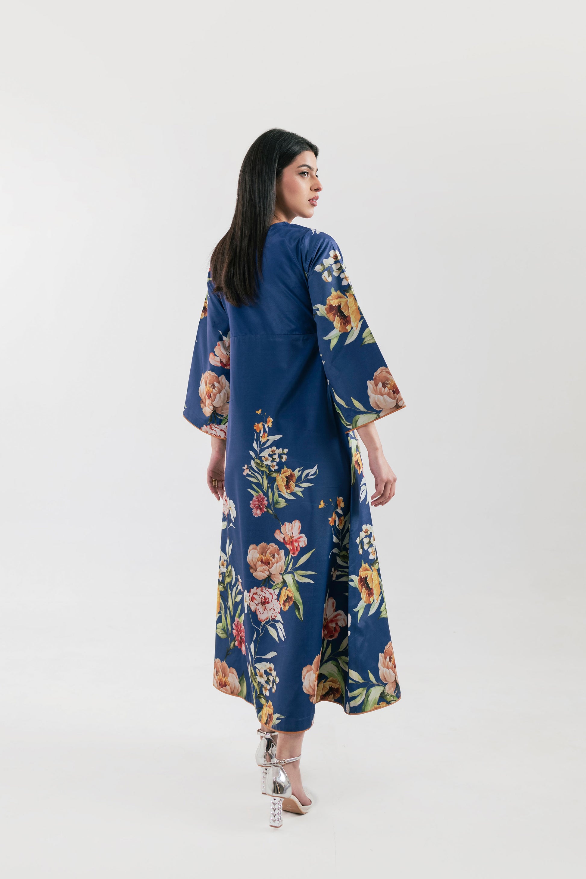 Classic dark blue with a bold twist—this stitched 1-piece set features a blue printed shirt with delicate lace details. The look is elevated.