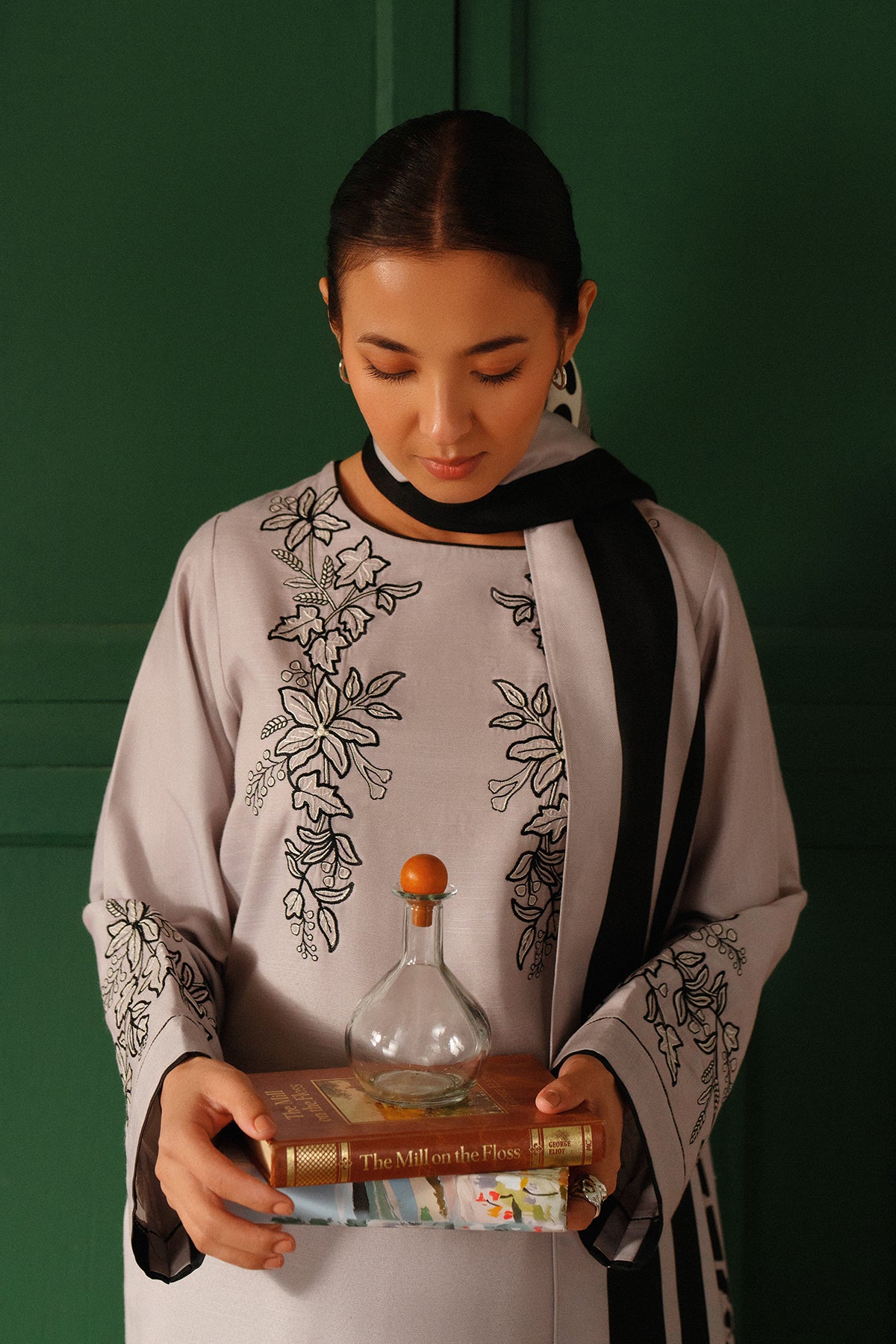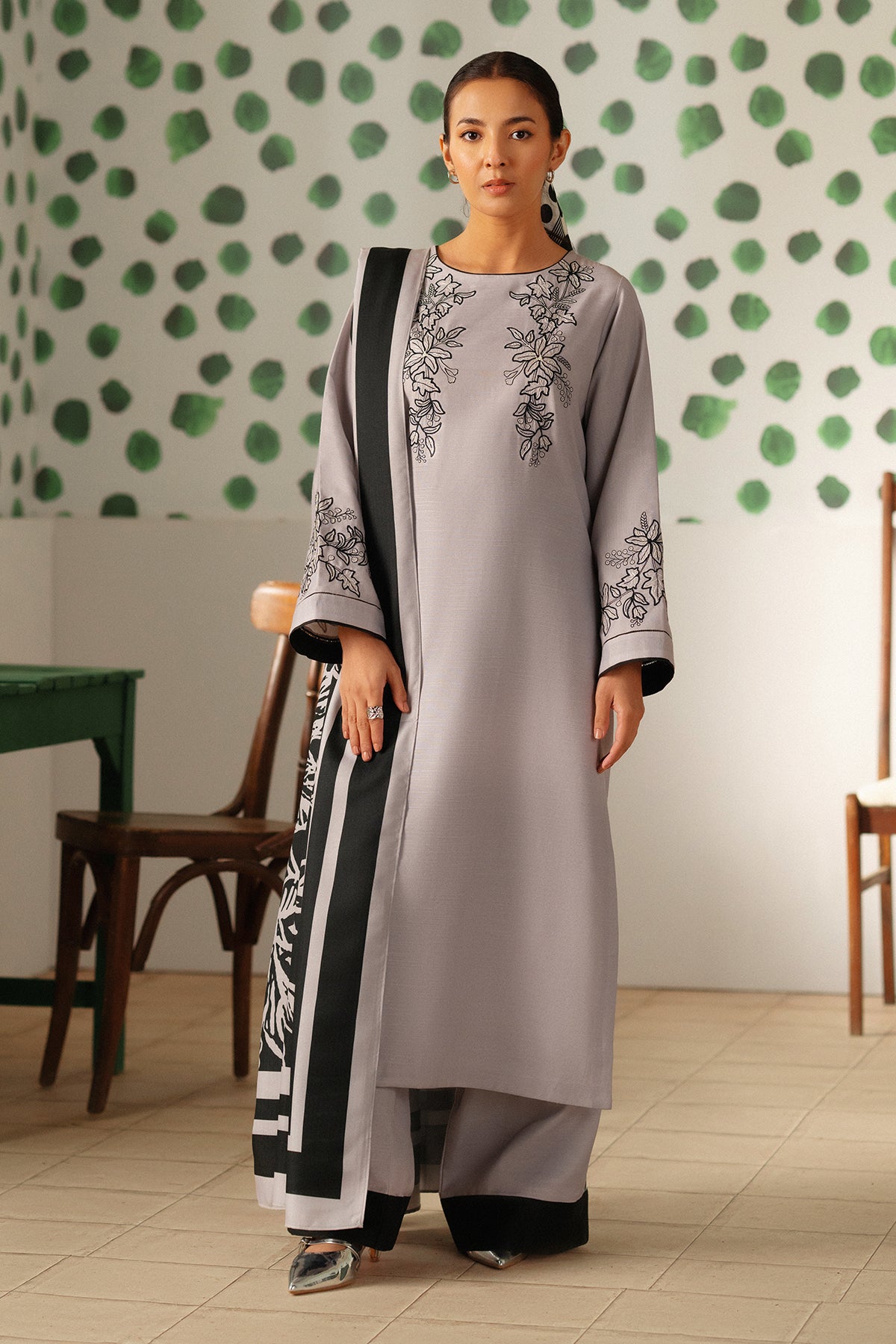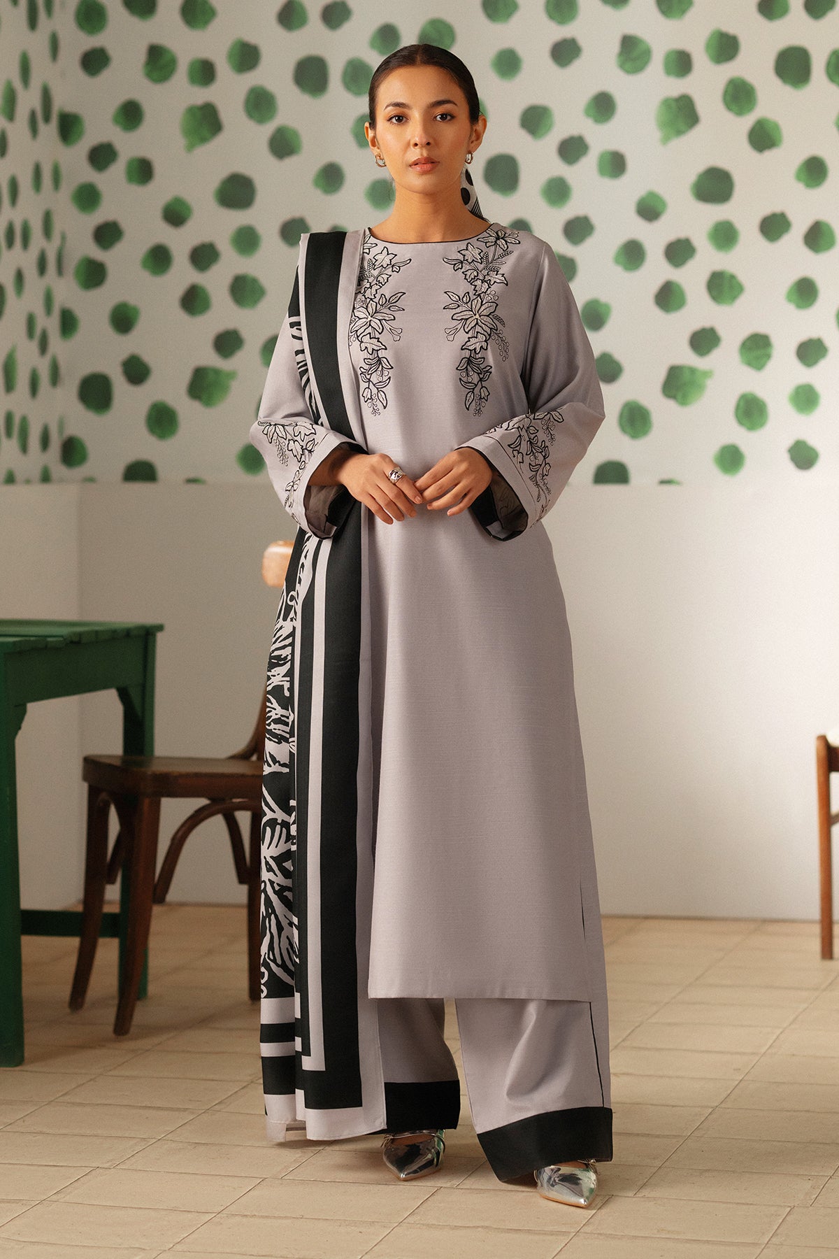 Timeless elegance meets modern comfort in our Pearl Grey Slub cotton embroidered 3-piece. A Spring essential that blends style.