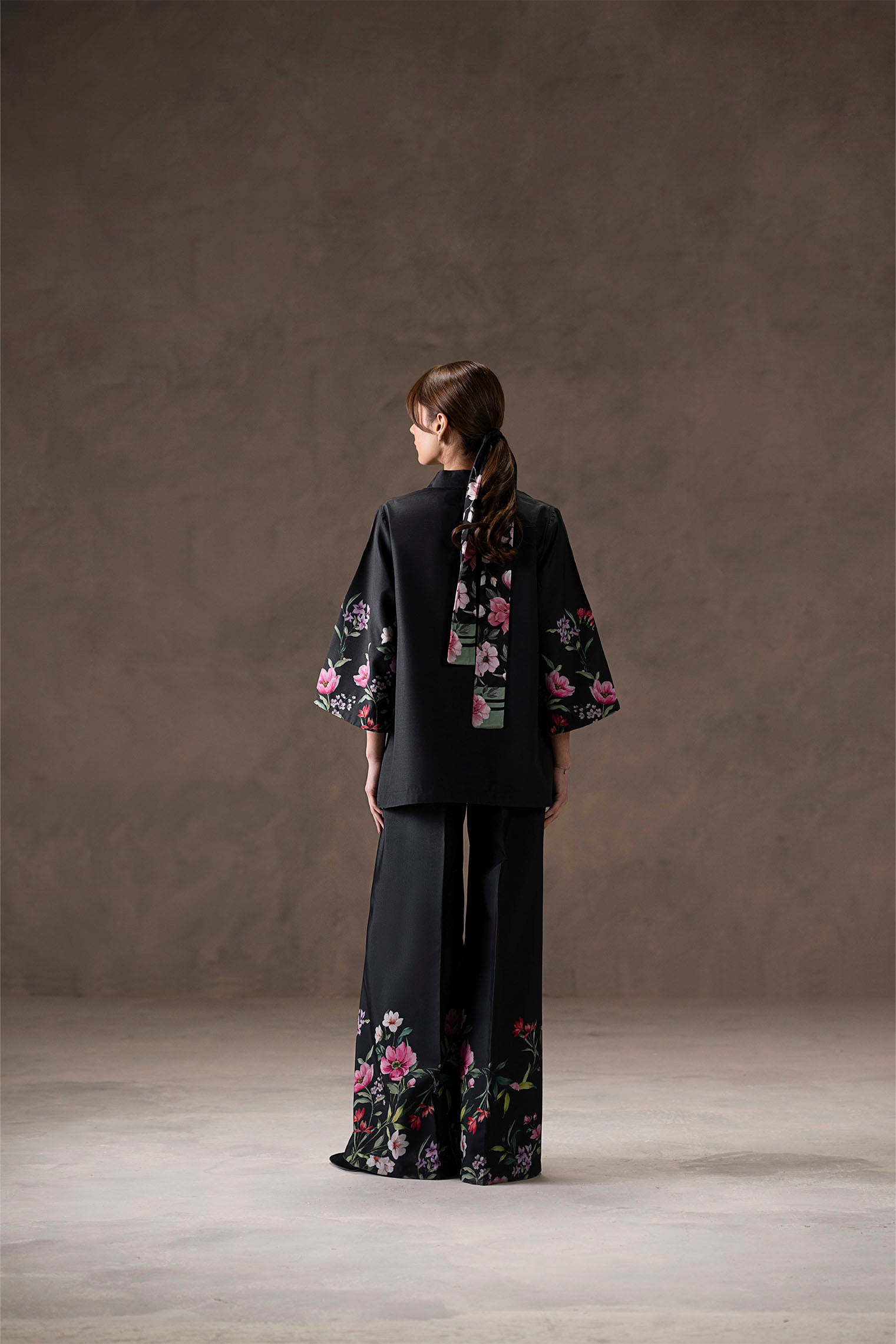 This chic stitched 2-piece ensemble features a black printed poly lawn top paired with wide-leg printed poly lawn trousers, creating a chic and effortless look. The breathable fabric ensures comfort, while the bold print adds a touch of modern elegance.