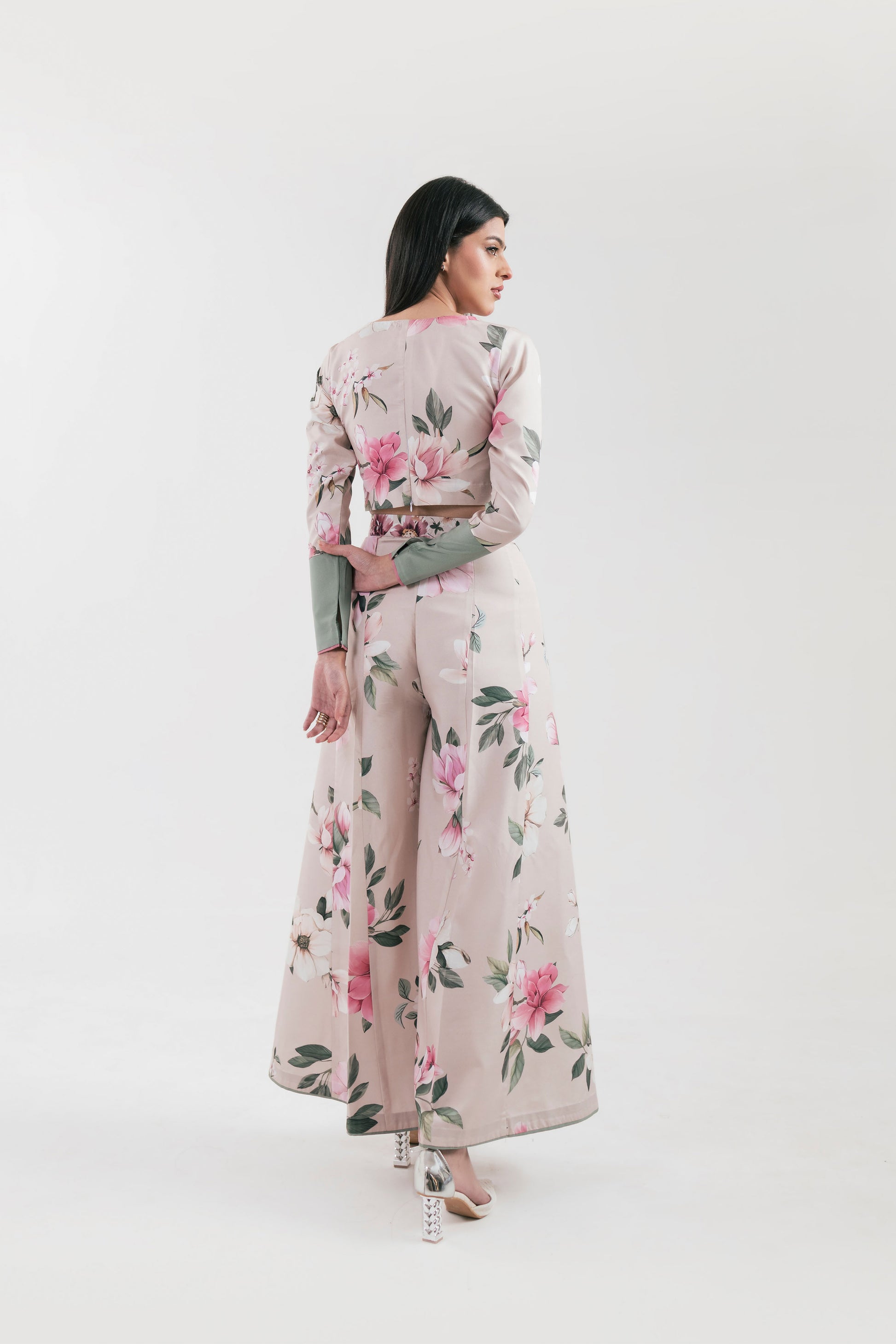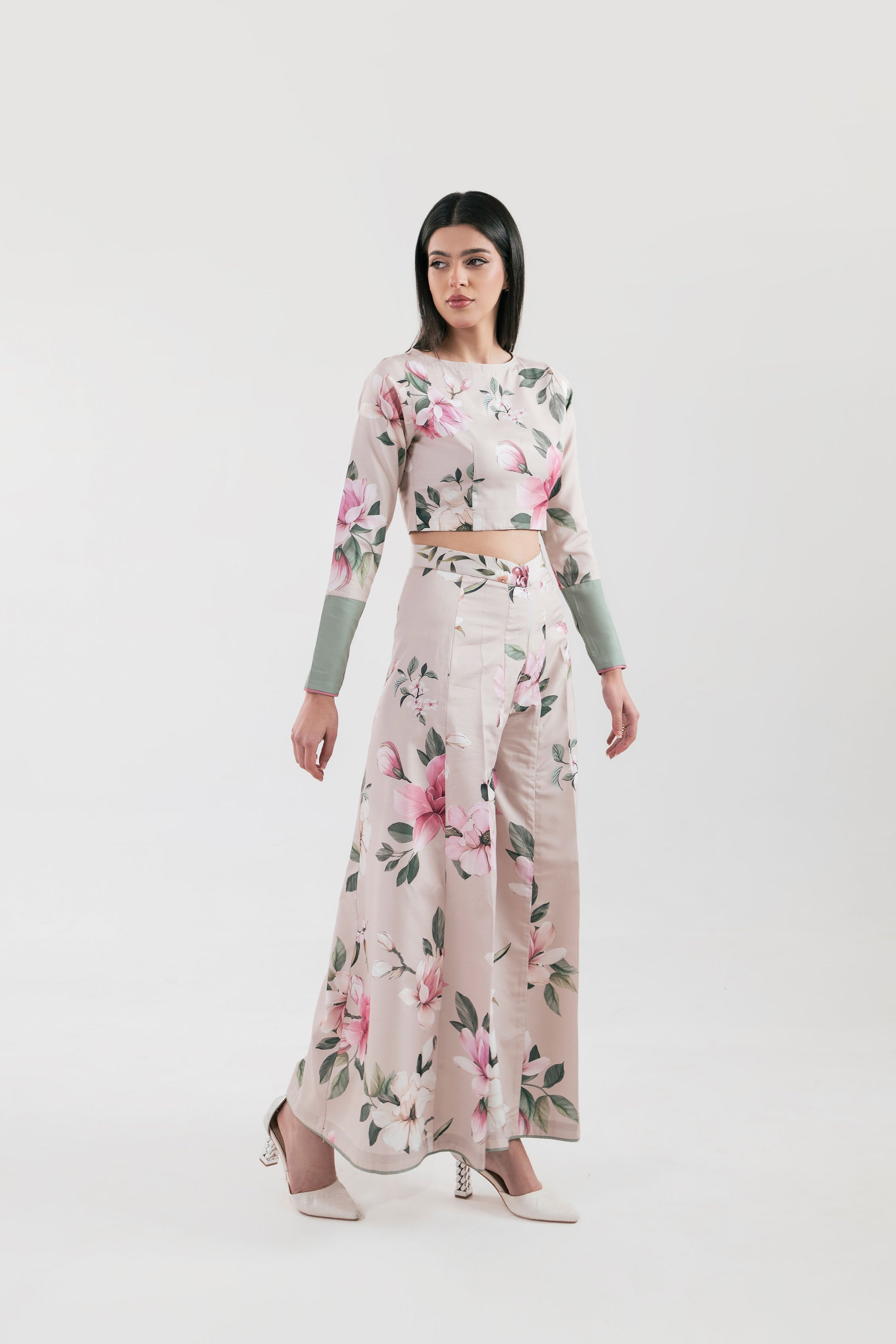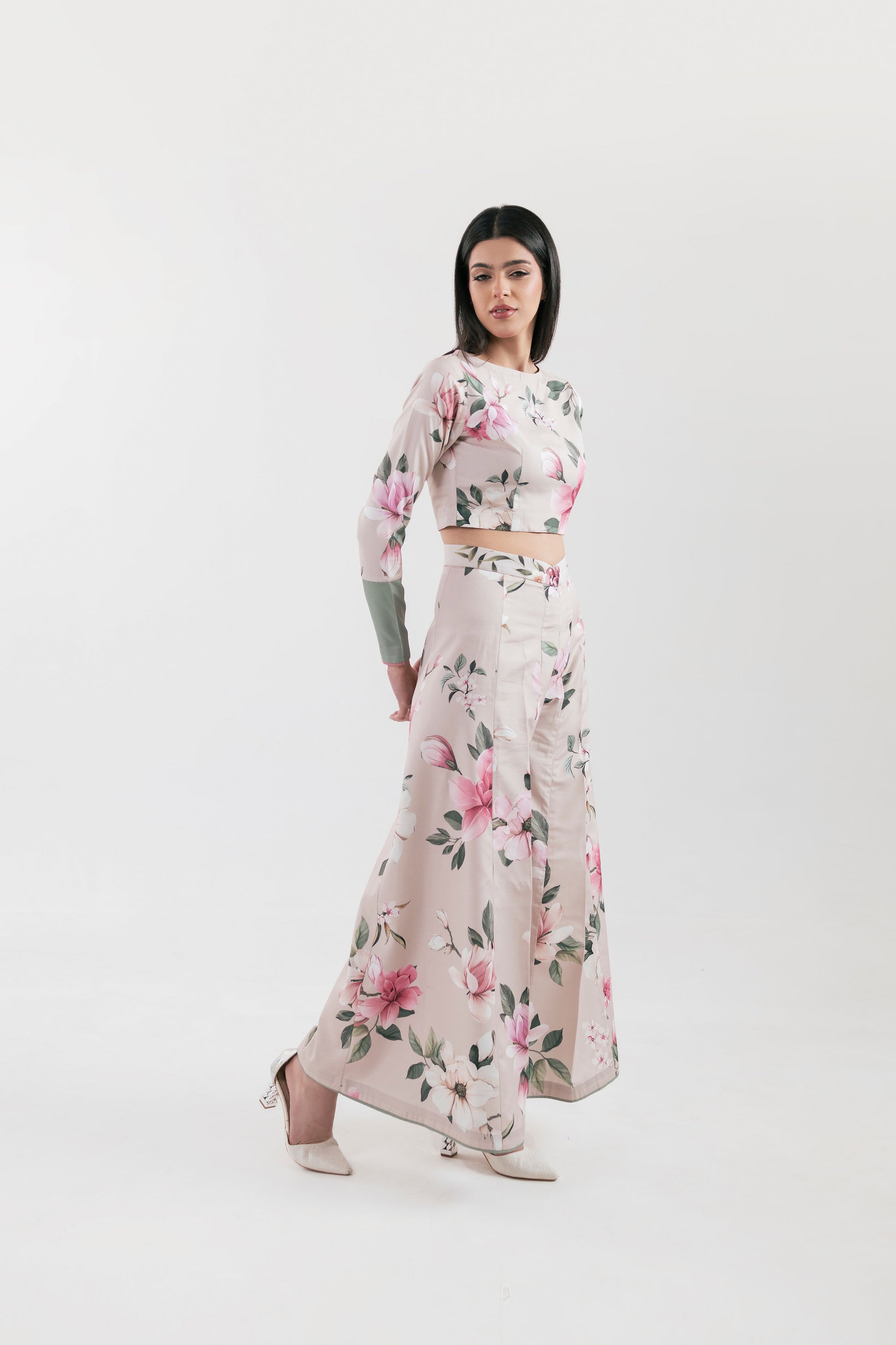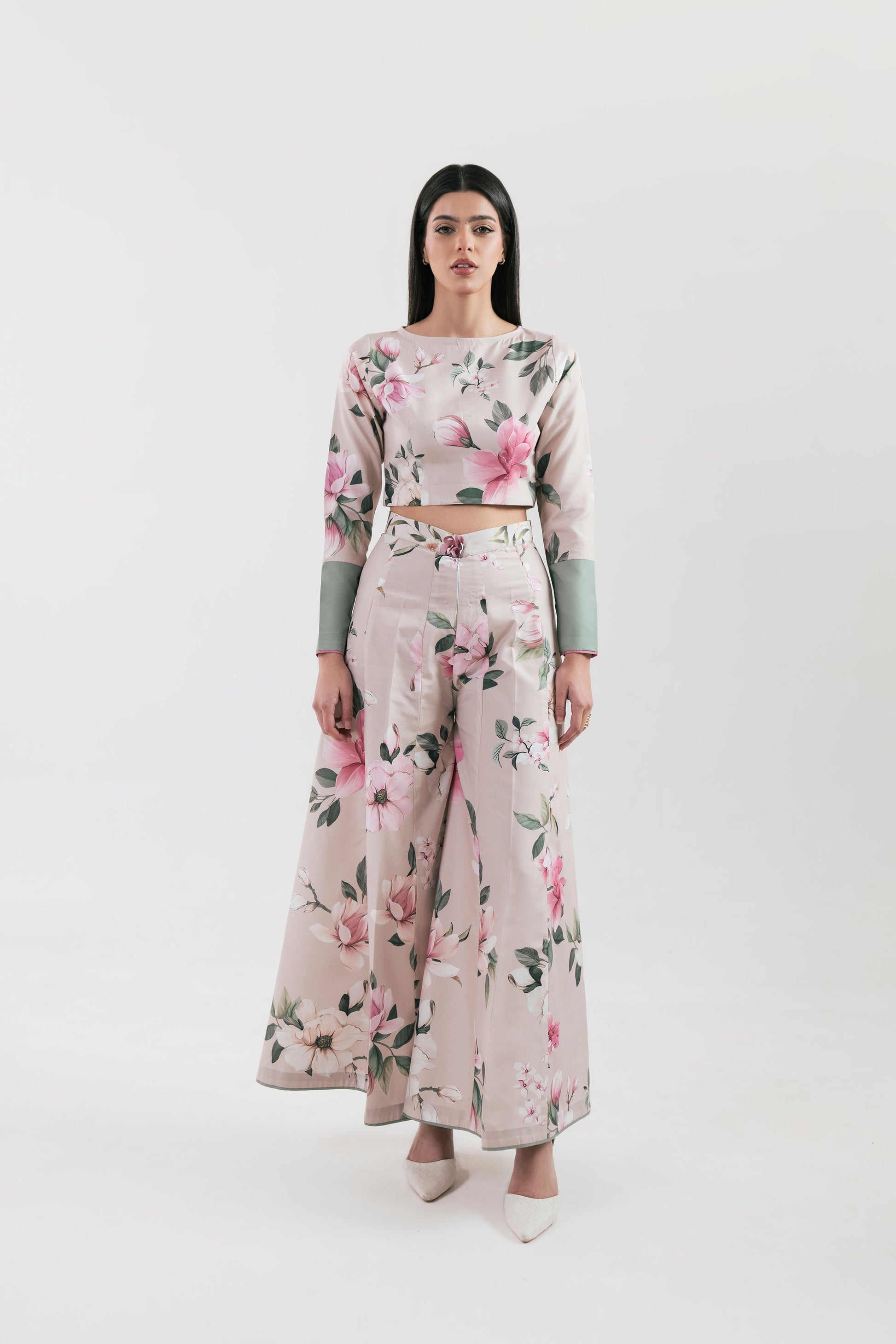 Effortlessly chic and gracefully feminine—this stitched 2-piece set features a printed poly lawn top paired with flared panel trousers. Designed in a soft light beige hue, its delicate floral patterns exude elegance, making it a perfect blend of comfort and style.